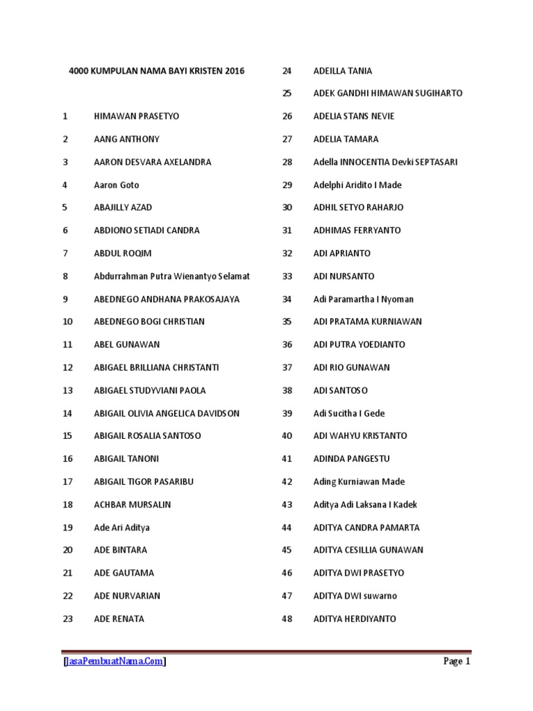 4000 Kumpulan Nama Bayi Kristen 2016 Pdf